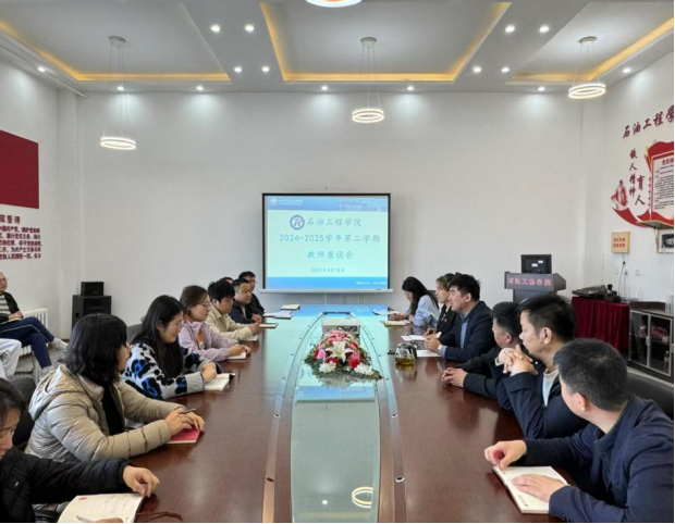 为持续提升教育教学质量,优化教学管理服务,4月15日下午,石油工程学院在811会议室召开2024-2025学年第二学期期中教学检查教师座谈会。院长李岳祥、副院长朱砂、办公室主任赵昕及各教研室主任、教师代表出席会议,会议由李岳祥院长主持。