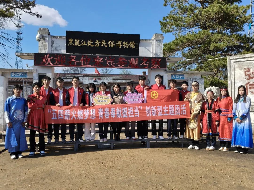 黑龙江北方民俗博物馆,作为国家二级博物馆,不仅承载着丰富的民俗文化,更是弘扬历史文化、传承民族精神的重要阵地。博物馆以实物展览为文化元素,以大容量的真实藏品还原历史,大视角展示了北方文化和黑土地文化的璀璨,反映了北方民族的文明成果。博物馆的每一件农耕器具、每一寸民族刺绣都是鲜活的教育资源,能让学生从黑土地的文明密码中汲取精神力量。农耕文化展厅中,锈迹斑驳的犁铧、木制耕具让同学们驻足沉思。2022级学生党员杨瑞感慨:“这些裂痕仿佛和课本中老式钻机的磨损痕迹一样,都是奋斗者的勋章!”