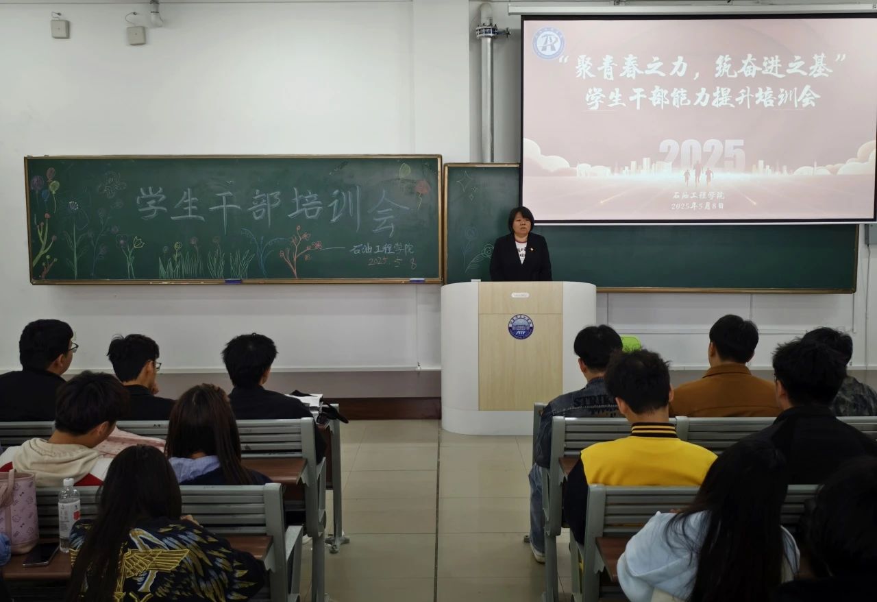 为推进石油工程学院“1+1+1+1+N”赋能计划,全面提升学生干部综合能力,强化学生干部队伍建设,增进综合素养与责任意识,石油工程学院于5月8日12:00在主教502举办“聚青春之力,筑奋进之基——学生干部能力提升与责任担当”专题培训会。本次培训由石油工程学院张雪老师动员,院学生会办公室副部孙省言、王薪琪主讲,石油工程学院全体学生干部参与学习。