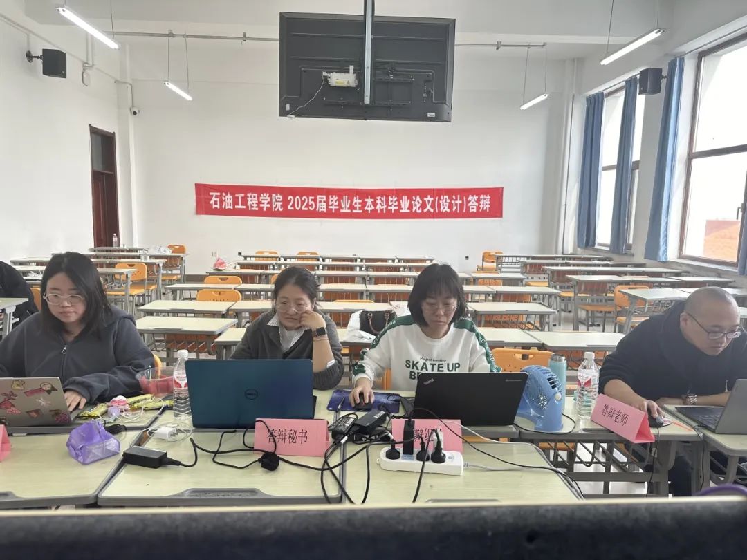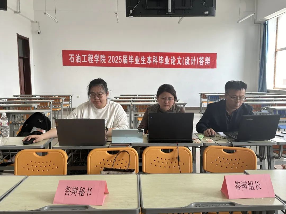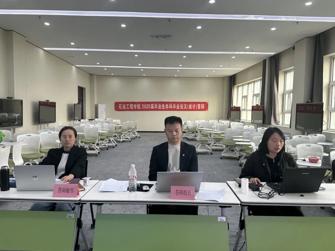 本次答辩由我院28位专兼职老师组成石油工程专业、油气储运工程专业,共计7个答辩组。答辩工作采用答辩组教师线下统一地点、学生“线上网络直播答辩+线下返校现场答辩”相结合的形式进行,共有3名学生返校参加线下现场答辩。