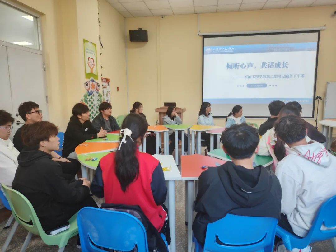 为落实立德树人根本任务,更好地走进学生、融入学生、服务学生,营造学院良好的育人氛围,5月9日,石油工程学院成功举办了第二期院长书记下午茶活动。石油工程学院党总支书记孙晓萍、党总支副书记张雪与24级学生代表,在惬意温馨的氛围中,一场聚焦成长足迹与未来蓝图的交流静静拉开帷幕。