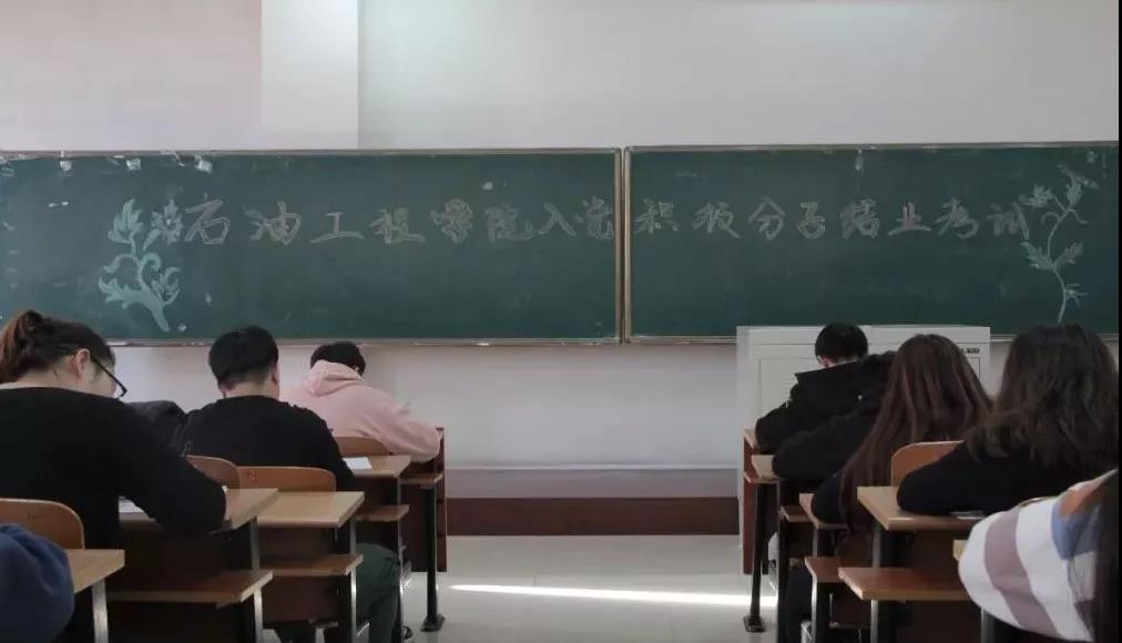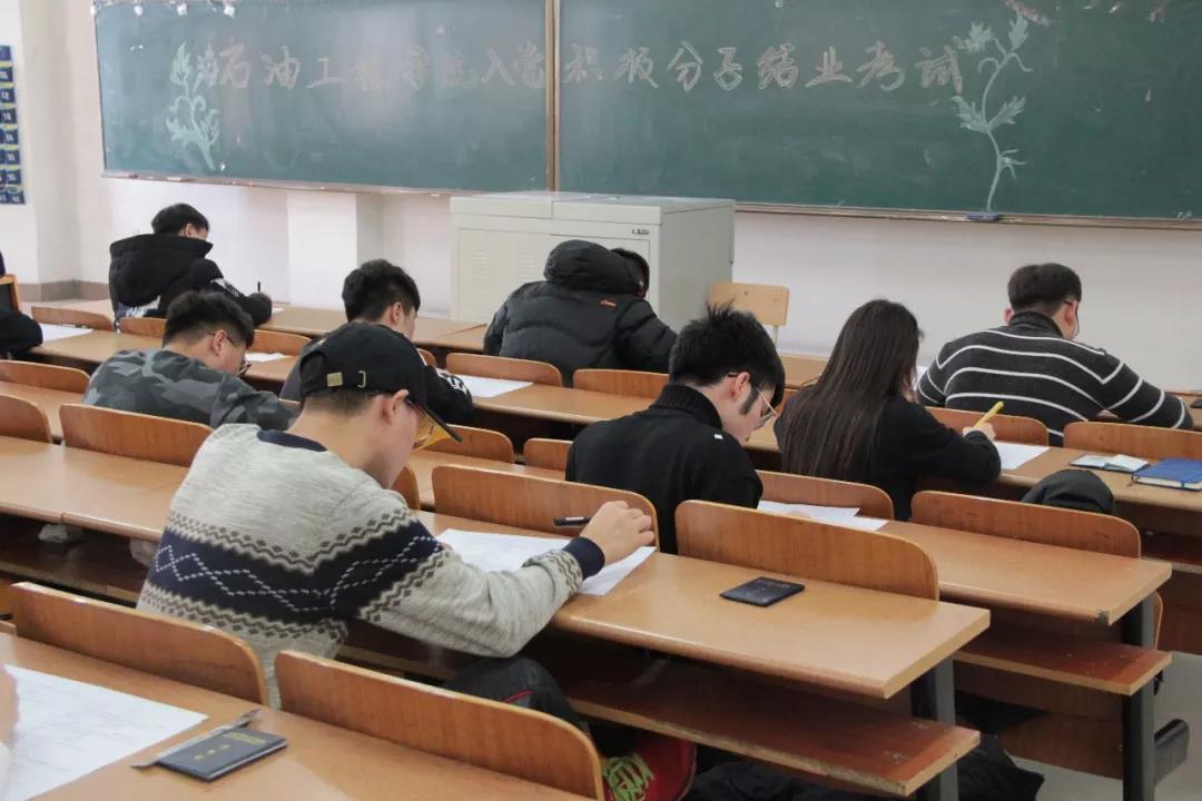 为做好新形势下的党员发展工作,11月25日至29日,石油工程学院在主教学楼426教室举办了为期一周的入党积极分子培训班。为检验学习成果,11月29日中午于426教室进行了培训班结业考试。石油工程学院党总支副书记张雪,学生党支部书记王昱监考。
