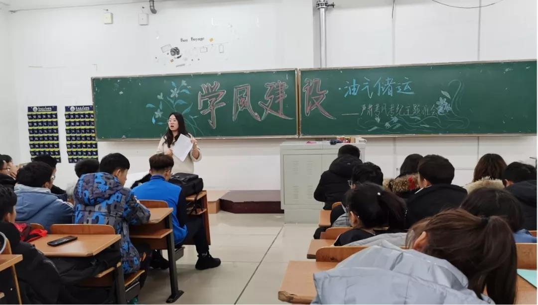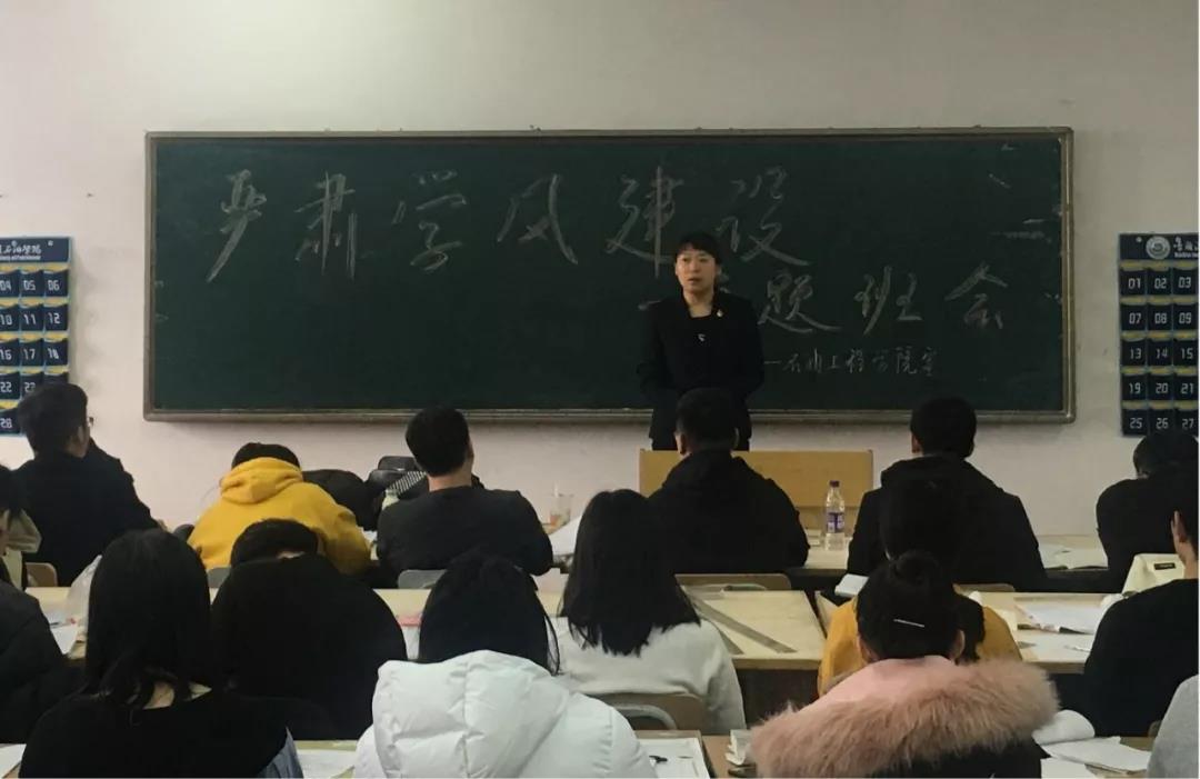 为贯彻落实石油工程学院“加强考风考纪,构建诚信校园”的各项工作,巩固和扩大学风建设已取得的成效,充分调动广大师生教学和学习的积极性、主动性,油气储运工程专业各年级班主任于2019年12月9日至12月13日,分别召开了“学风建设”主题班会。