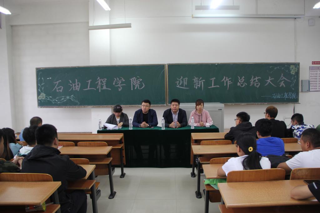 9月5日中午,石油工程学院在主教427教室,召开了迎新工作总结会议。参与本次迎新工作的全体学生干部出席会议。会议由学院团总支书记张雪主持,党总支副书记康平军,15级辅导员于洪峰和17级辅导员王昱出席此次会议。