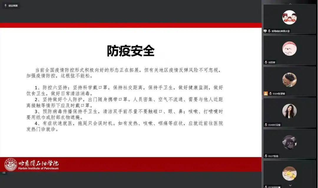 为了让同学们提升自我安全保护意识,进一步了解实习目的、要求、实习安全等事项,确保同学们在实习期间能够安全稳定地完成实习任务。2022年9月13日,我院在腾讯会议召开2019级“3+1”企业实习安全大会。会议由2019级辅导员郭海明主持,石油工程学院2019级全体学生参加会议。