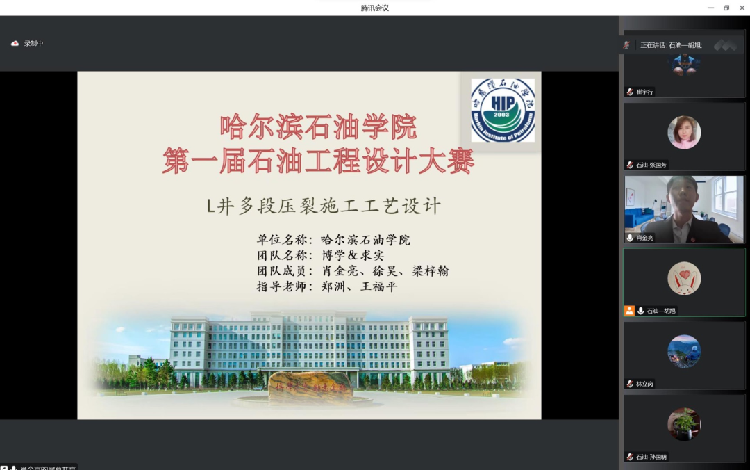 参赛队伍汇报结束后,评委老师对本次石油工程设计大赛进行了点评:石油工程设计大赛是全国性的专业比赛,通过本次竞赛不仅能够让学生将课堂上学到的理论知识运用到实践中,更重要的是学会发现问题、分析问题和解决问题的思路与方法。本次大赛最终决出一等奖1名、二等奖2名、三等奖2名。获奖团队名单如下: