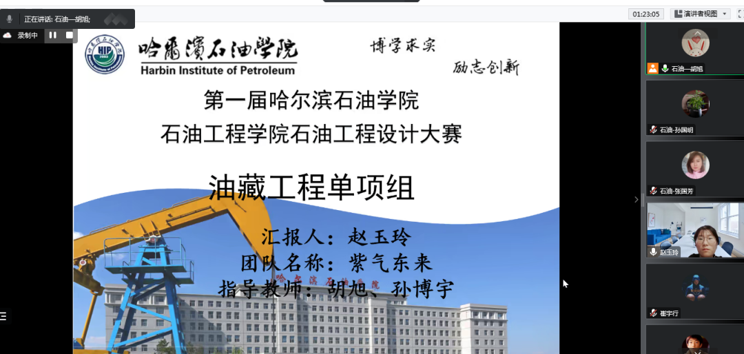 本场竞赛分为钻井工程单项组、油藏工程单项组、采油采气工程单项组三项。赛场中,各参赛团队准备充分,选手们进行了专业、流畅的汇报陈述,评委老师根据现场汇报情况与提交作品内容质量进行评分。