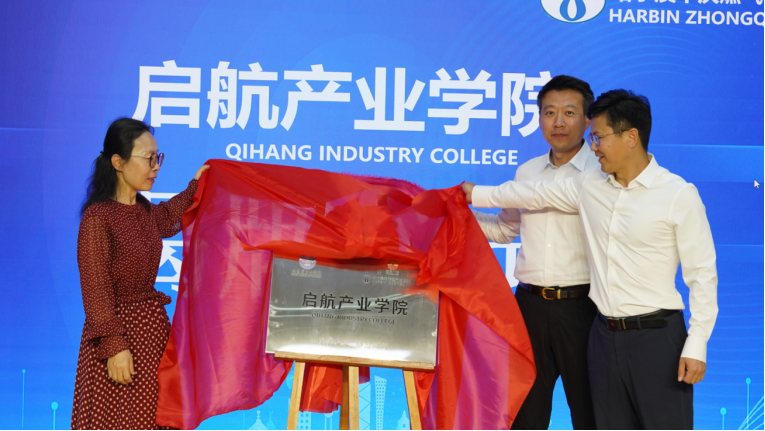 王义宁校长、宋文博副总经理、孙运军副书记为“启航产业学院”揭牌