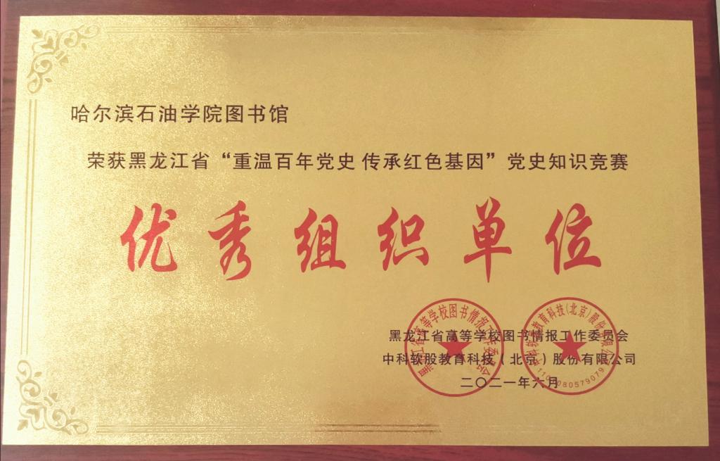 6月25日,由黑龙江省高等学校图书情报工作委员会主办、中科教育协办历时两个月的“重温百年党史 传承红色基因”党史知识竞赛活动圆满落下帷幕。本次竞赛活动全省各高校50余所图书馆8800余名师生踊跃参与,金沙官网图书馆获得“优秀组织单位”荣誉称号。