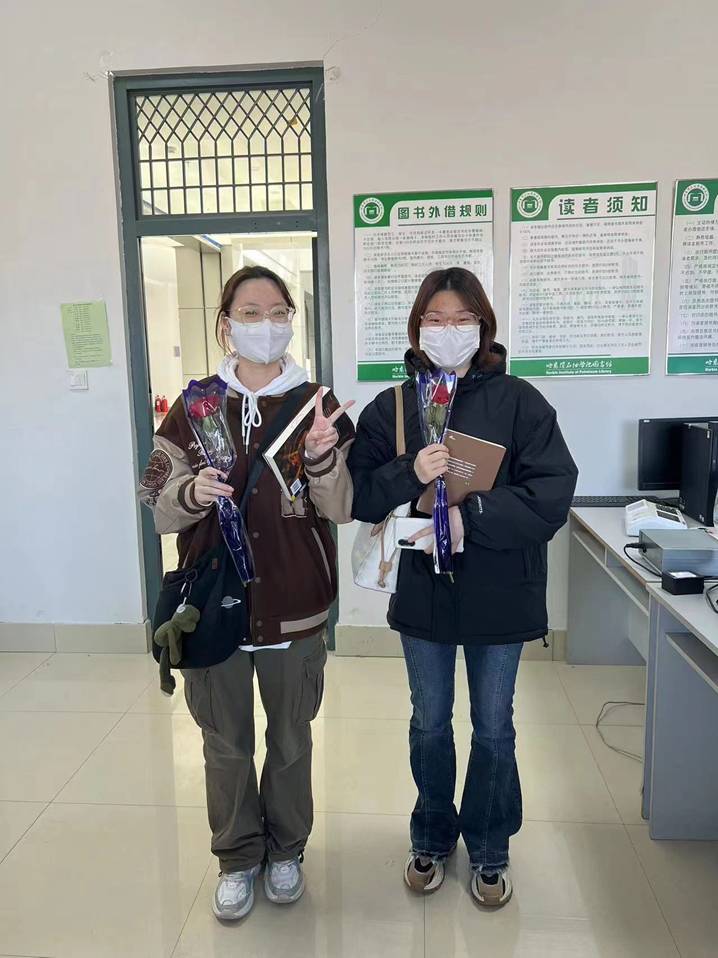 同时,“赠人玫瑰,手留余香”活动在图书馆总借还书处火热进行,凡当天到馆成功借阅图书的前150名读者将获赠一支玫瑰花。
