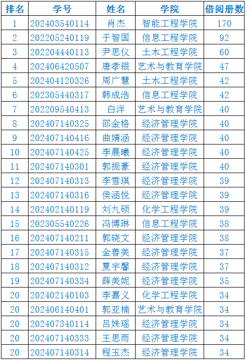“问渠哪得清如许,为有源头活水来。”大量阅读能让我们获取知识,丰富生活,强大内心,开拓视野。为了鼓励金沙官网学生养成多读书、读好书的阅读习惯,树立良好学风,共建书香校园。同时更加有效地利用图书馆资源,读书节期间,图书馆特举办‘借阅达人’评选活动,统计2024年学生读者的借阅数据,评选出了“2024年度借阅达人”榜单。