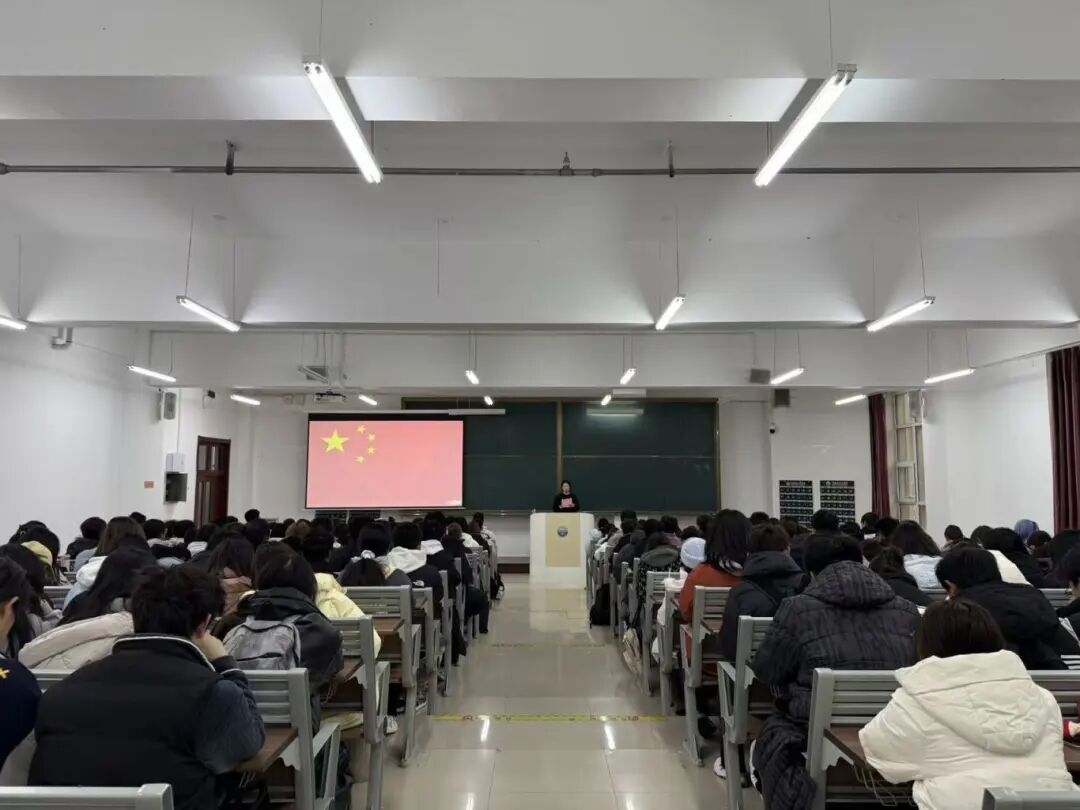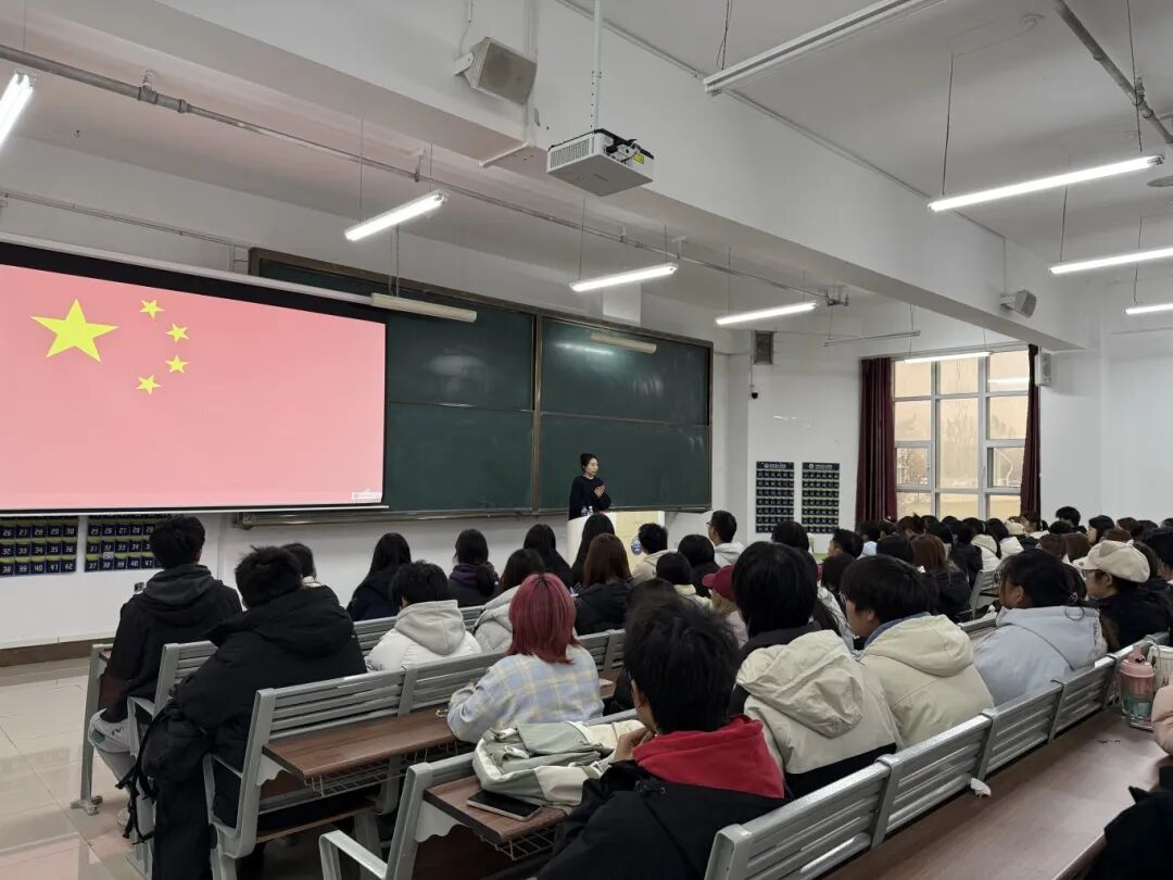 随后,孙雪纯老师以“中华民族精神基因”阐释爱国主义的传承与时代内涵,结合古今爱国案例,让同学们读懂青年担责的历史渊源;其次,她围绕“新时代青年如何担强国重任”,强调当代青年应锚定理想信念、深耕学业创新、锤炼品德修为、拓宽国际视野;最后,她结合青年成长与国家发展的紧密联系,呼吁大家以实际行动将家国情怀融入学业与成长,践行青年使命。