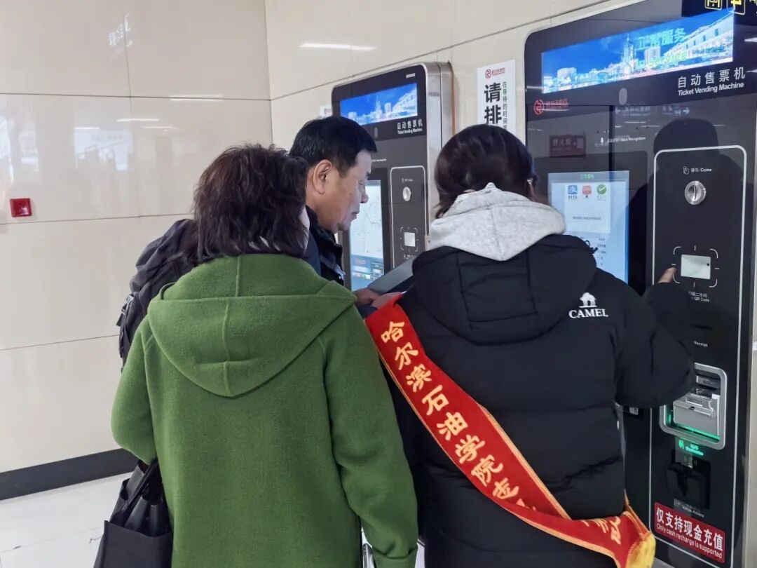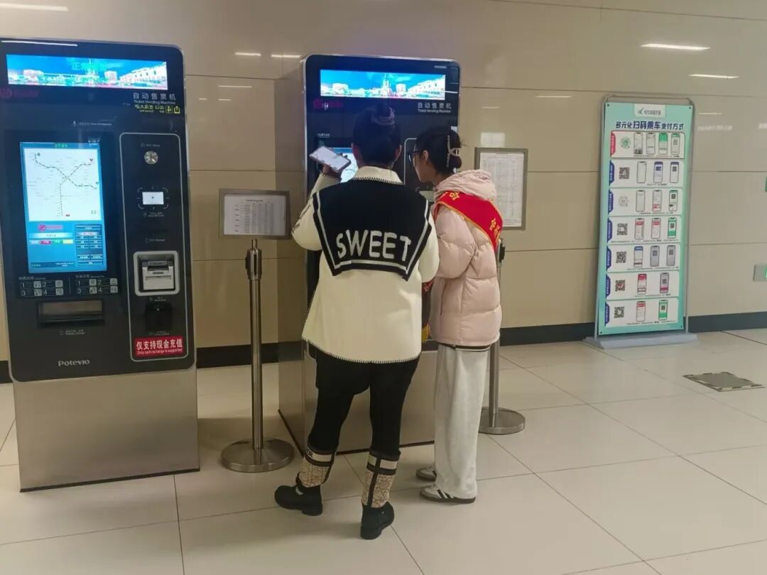活动当天,志愿者们身着统一志愿服装,分散在售票处、闸机口、出入口等关键区域提供服务:在自助售票机前,他们耐心协助操作不熟练的乘客选择线路、完成支付;在闸机口,引导乘客有序刷卡、扫码通行,及时帮乘客解决遇到的问题;遇到携带大件行李或行动不便的乘客,志愿者们也会主动上前搀扶、提供帮助。