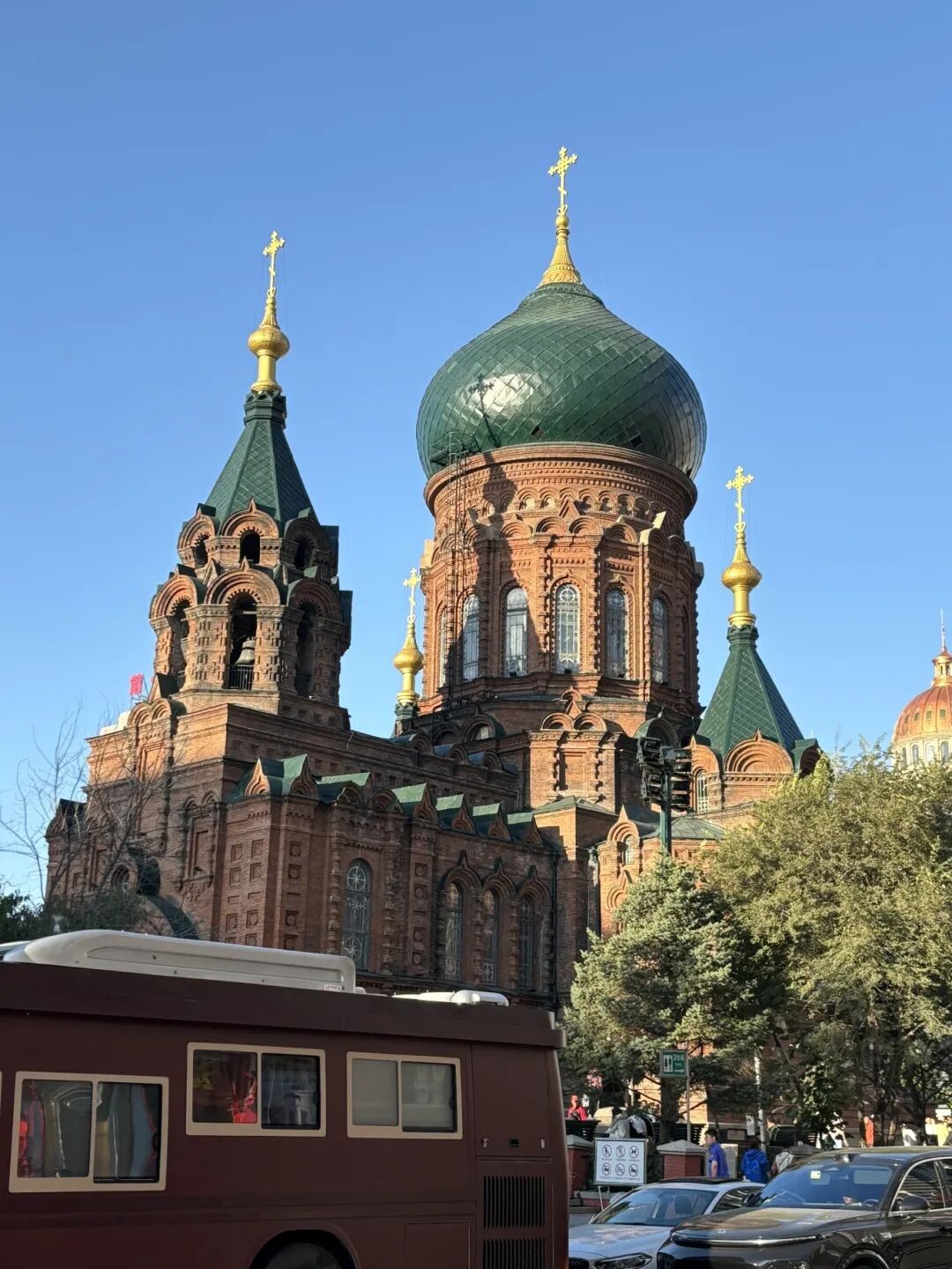 圣索菲亚大教堂在哈尔滨道里区,是一座有一百多年历史的老教堂,建于1907年。像一颗镶嵌在城市肌理中的珍珠,红砖的墙体在时光里沉淀出温润的色泽,穹顶在阳光下泛着柔和的光泽,仿佛从遥远的岁月里轻轻飘落。推门而入,斑驳的壁画与穹顶的光影交织,空气里仿佛还萦绕着往昔的诵经声。它不只是一座建筑,更像一位沉默的叙述者,把哈尔滨的异域风情与百年故事,都藏在了砖缝与光影里,是感受哈尔滨老风情的好地方。