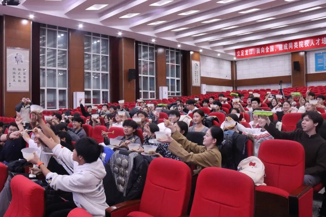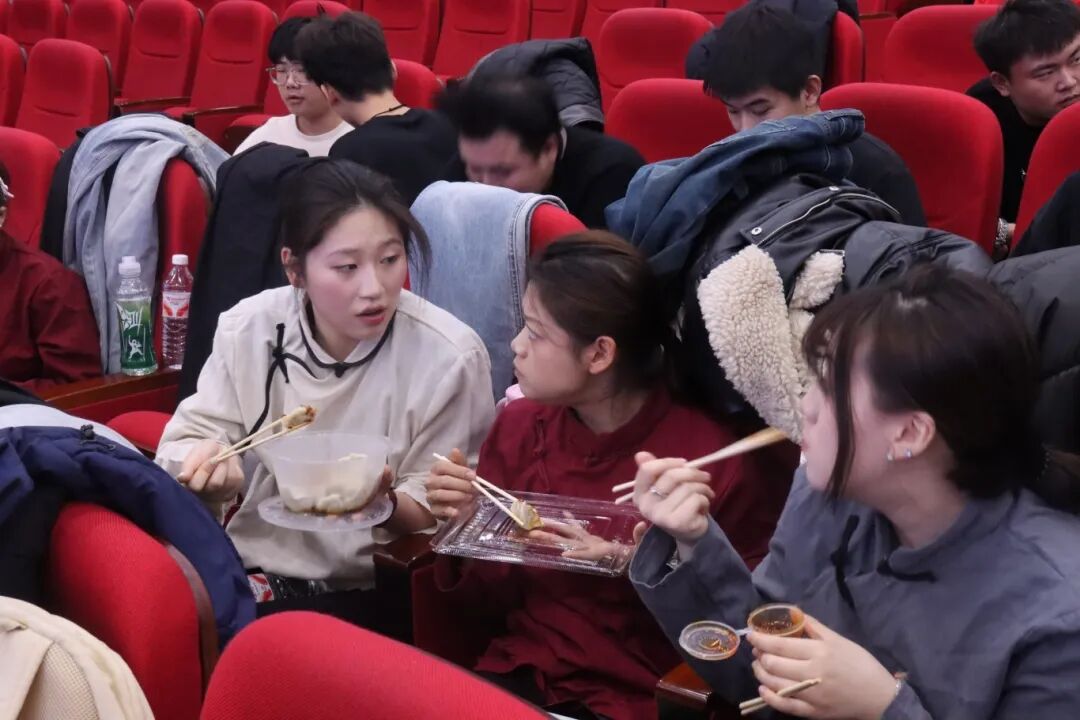 一盒盒饺子传递着温暖,同学们的脸上倦意尽消,洋溢着幸福的光彩。这份惊喜的立冬问候,让排练现场温情满溢。饰演王进喜的李彬同学感慨道:“排演虽苦,但学校的深切关怀让我们动力倍增。我们必将这份感动化为舞台上最真挚的演绎。”