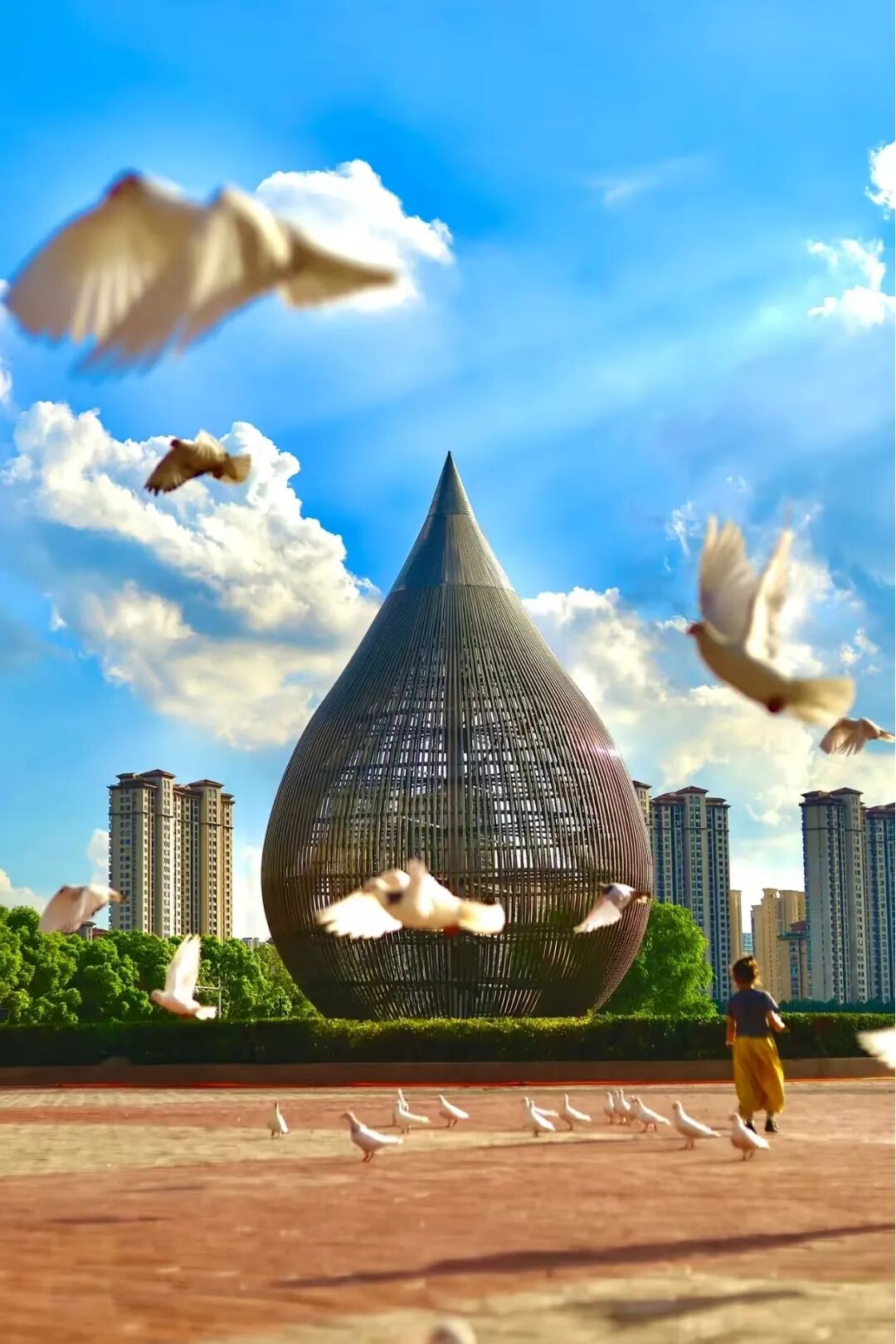 宿州的镜头里,金属雕塑如振翅的飞鸟划破晴空,银白的羽翼在蓝天下泛着光,身后的电线与绿树织就日常的底色。每回路过这雕塑,总想起放学时追着云跑的日子,空气浸着少年时的松弛,那是他乡再难寻的舒展与安稳。八境台的飞檐挑着流云,那是赣州的身影。朱红的门窗、精致的雕花,连石狮子的眼神都裹着岁月的温软。恍惚间仿佛又听见老茶馆里的戏腔,那是刻在骨子里的烟火,让漂泊的日子有了归处的坐标。