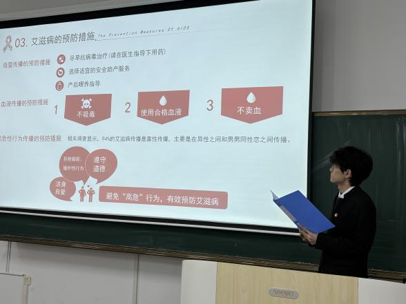 为切实加强校园艾滋病防治教育工作,增强学生群体自我防护意识,金沙官网智能工程学院于2025年12月3日在第一教学楼507开展“共抗艾滋,共享健康”的防艾知识讲座,告别“谈艾色变”,学会科学防护。通过图文解读等形式,向学生普及防艾知识,使“共抗艾滋,共享健康”的活动主题更深入人心。
