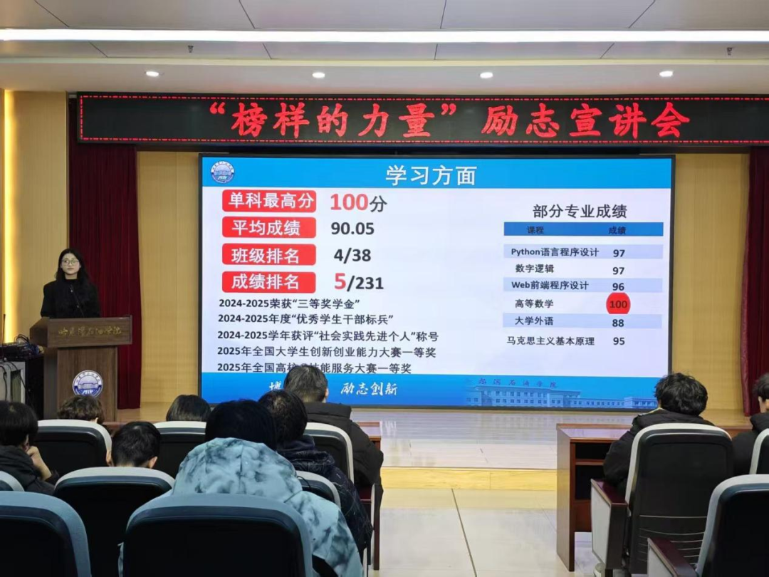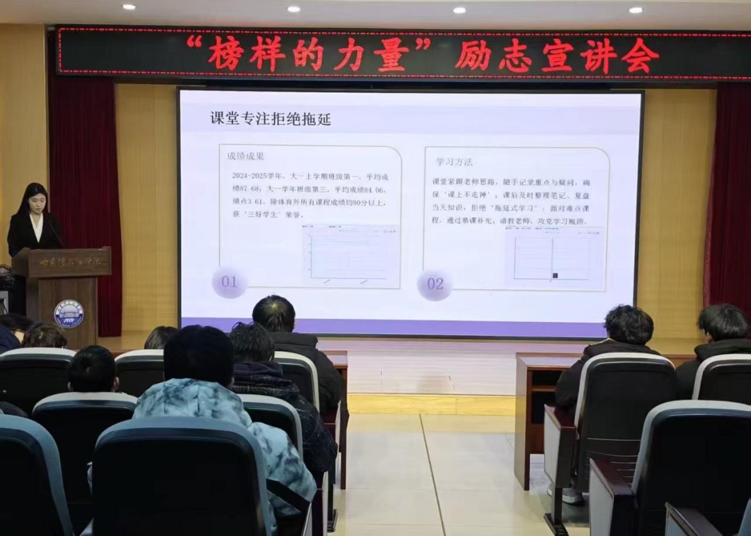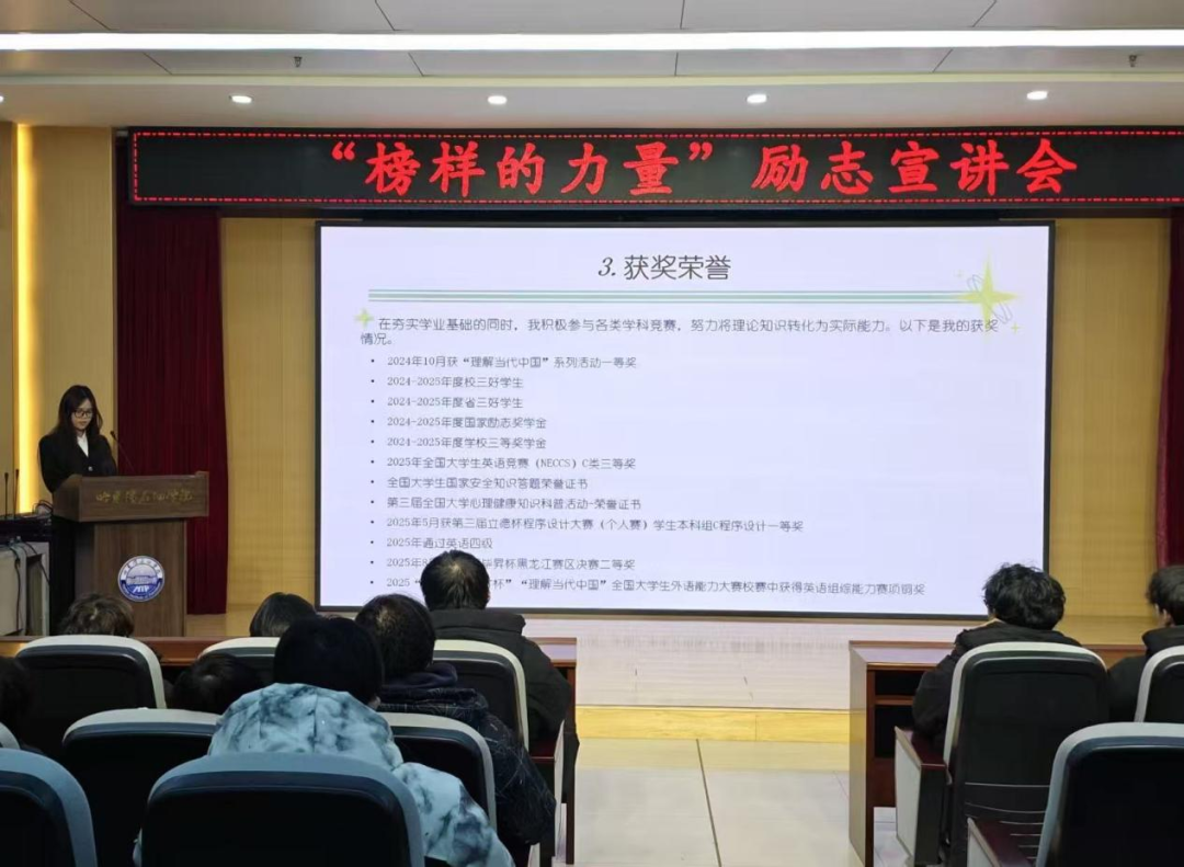 此次“榜样的力量”励志宣讲会不仅是一次经验分享,更是一次精神的传递和价值的引领。它展示了当代青年学子应有的担当与风采,也在校园内营造了学习榜样、争当先进的良好氛围。相信在这些优秀榜样的带动下,将会有更多同学明确自身方向、坚定理想信念,在青春的赛道上奋力奔跑,为实现个人理想、服务国家发展贡献青春智慧与力量。