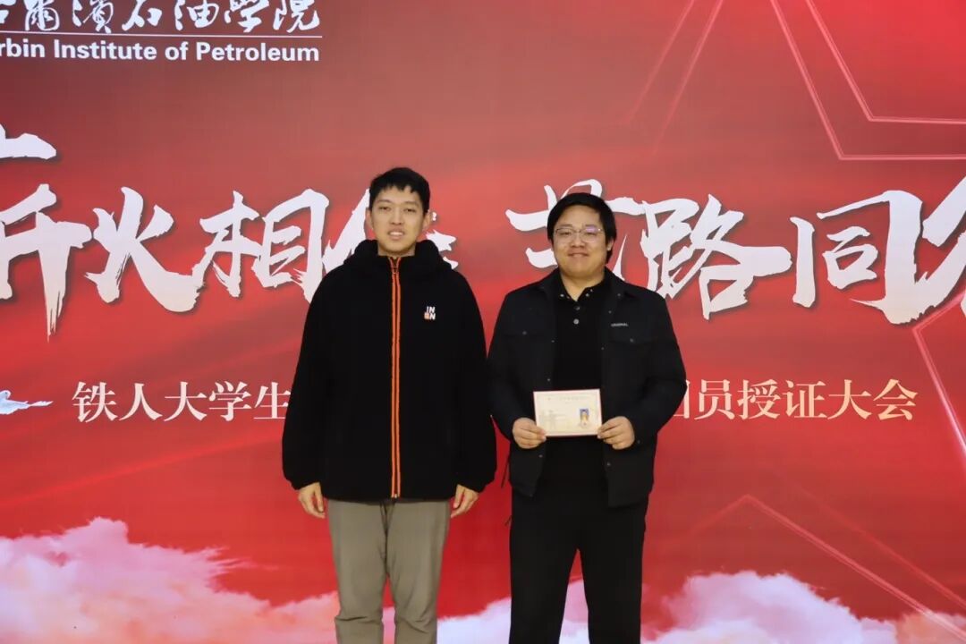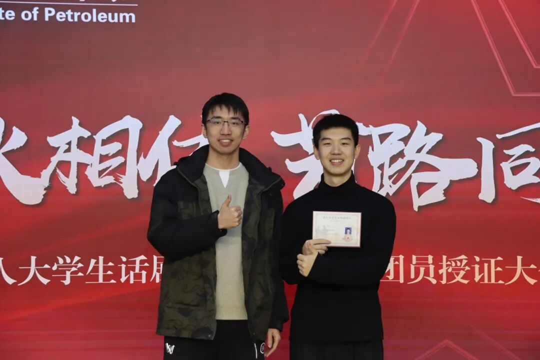 授证环节中,陈志勇书记为话剧团成员代表颁发了团员证书。这份证书,不仅意味着身份的确认,更承载着学校对团员们持续深耕艺术实践、自觉传承红色基因的殷切期望,象征着一份沉甸甸的文化使命与精神托付。