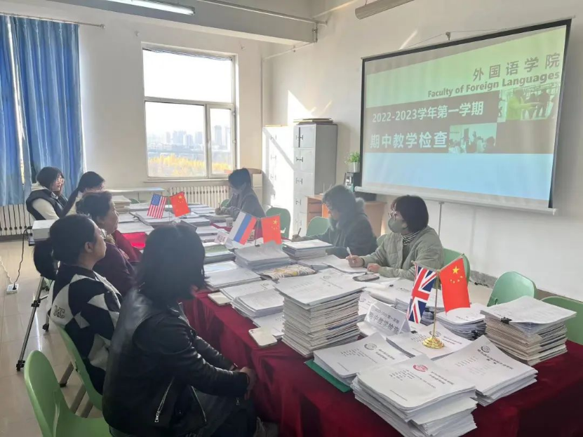 2022年10月19日,由总督学于慧力教授、教务处副处长周微和科长肖晓明组成的学校期中教学检查小组来到外国语学院,对学院的课堂教学、教学管理、2023届毕业论文指导工作和3+1企业综合实习工作进行了细致的检查。学院院长王莉娅、副院长高丽娜、各系部主任和教学秘书等接待了校检查小组,对本阶段工作进行了汇报,同时也就教学中存在的困难同校检查小组进行了交流。