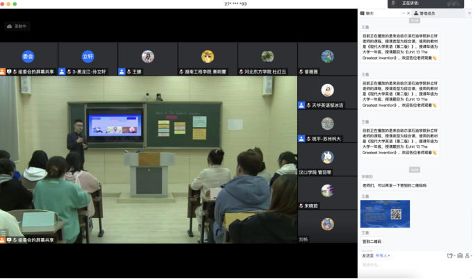 2023年3月19日上午,英语系孙立轩老师,在第七届全国高校英语教师教学基本功大赛教学观摩研讨会上,向全国高校外语教师做了综合英语课程教学分享,得到了与会专家的肯定和所有观摩教师的积极反馈。