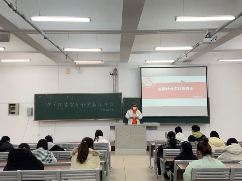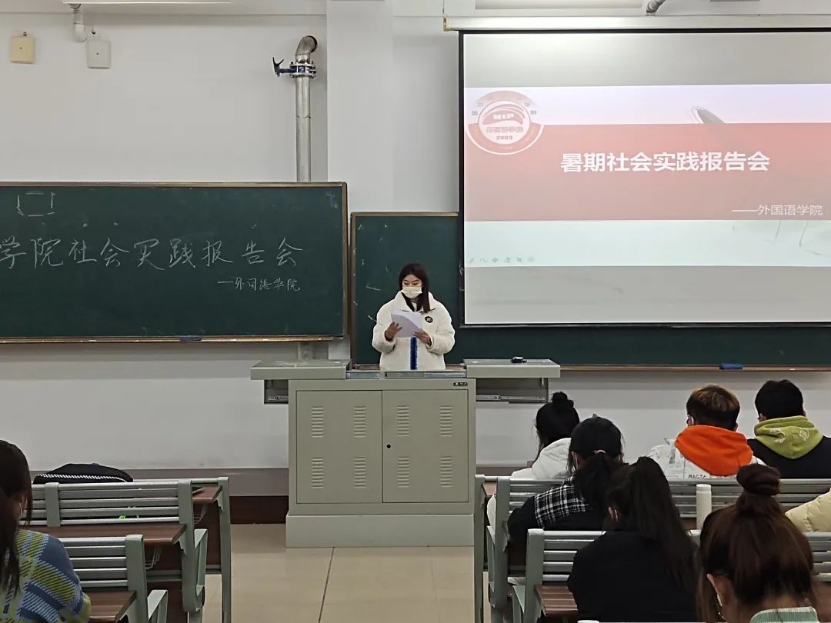 为深入学习贯彻习近平新时代中国特色社会主义思想,增强同学们对社会实践的了解,更加直观的感受社会实践。外国语学院于10月30日在主教519教室开展了暑期社会实践报告会活动,全体22级同学参加。