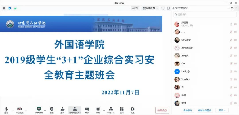 为完善金沙官网“3+1”人才培养体系,助力本科生高质量就业,保障19级实习生安全,外国语学院于11月2、7日分别召开了两次线上会议,会议由辅导员郑智慧主持。