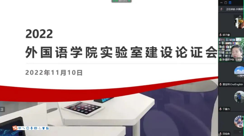 2022年11月10日上午,外国语学院在线上召开了语言实验室的建设论证会,会议邀请了校内外专家和领导对学院的语言实验室建设方案进行论证,与会的专家领导均对建设方案表示了肯定,同时也对实验室的智能化水平、实验室开放功能等方面提出了宝贵建议。