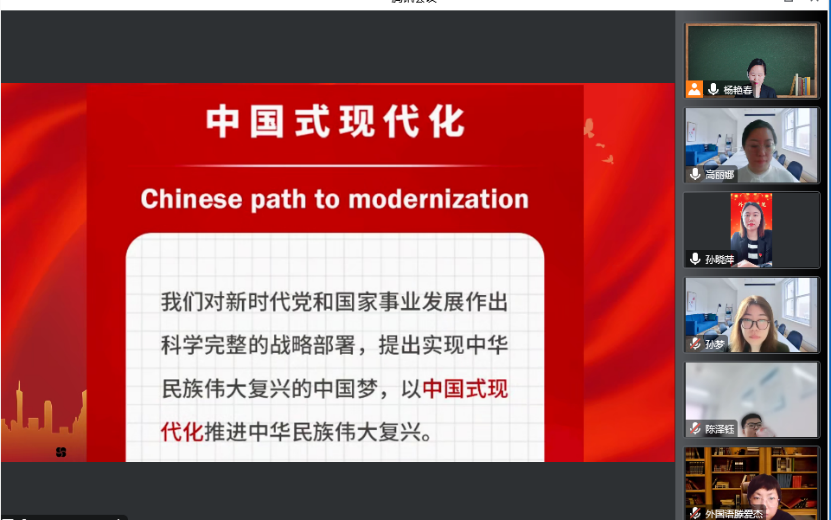 党的二十大胜利闭幕后,学院开展以“理解当代中国、讲好中国故事、传播好中国声音”为主题的专题教研活动,研讨如何践行“讲好中国故事是新时代中国高等外语教育的新使命”这一命题,如何开展好党的二十大精神进教材、进课堂、进头脑“三进”活动。党总支书记孙晓萍同志在部署会上强调:我院教师要把思政教育和专业学习相结合,让学生们对学科专业有新的认识与了解,也对党的二十大精神有更深入的学习与思考。积极引导学生将自觉用党的二十大精神武装头脑、指导人生,加强自身学科知识水平与综合能力的提升。