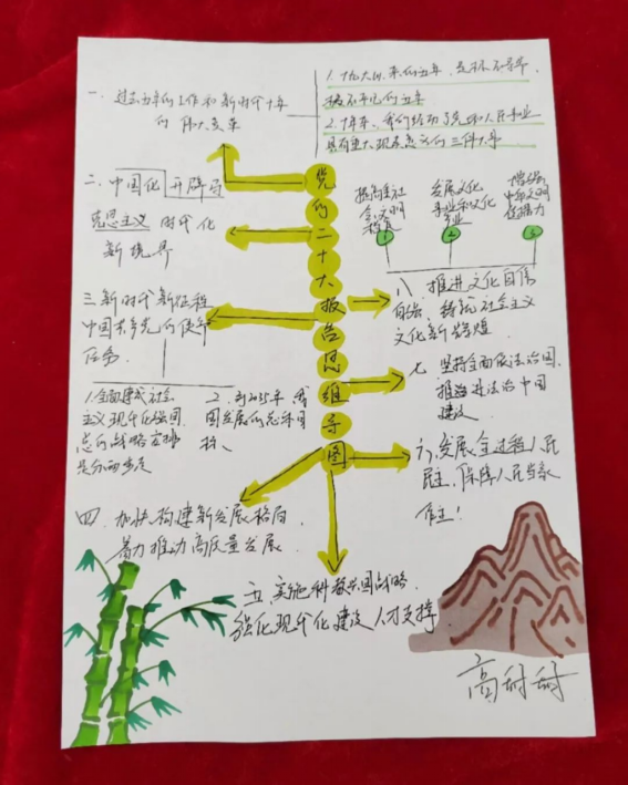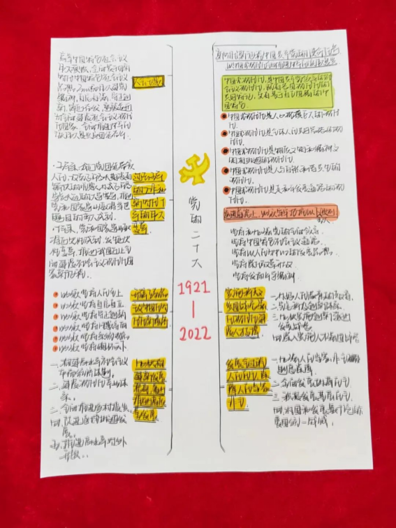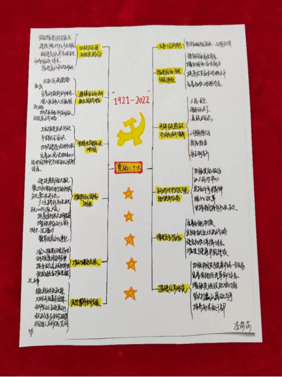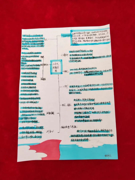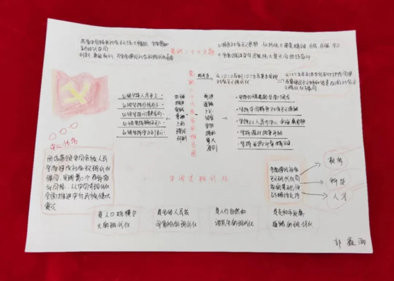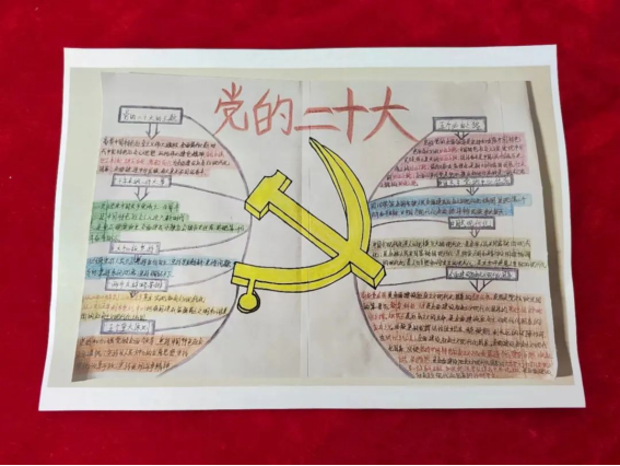 我院学生党员认真学习党的二十大报告,积极参与投稿,精心绘制思维导图。与常见的文字报告相比,思维导图能更直观地展现思维过程,加深对党的二十大精神的感悟,进而确保同学们看得懂、记得住,让党的二十大报告学习深入人心。