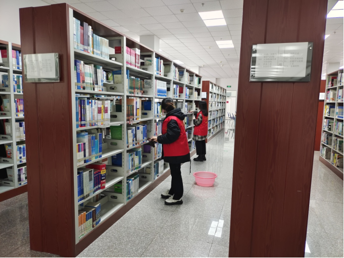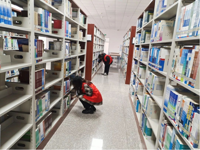 活动伊始,图书馆刘老师为志愿者分配工作,安排同学们打扫并整理书架。随后,志愿者们分工明确,将图书整理后放到指定书架,清理书架上的灰尘。活动过程中,志愿者们安静有序,在不打扰其他同学学习和阅读的情况下,顺利且圆满地完成了清理活动。最后,全体志愿者在图书馆一楼合照留念。