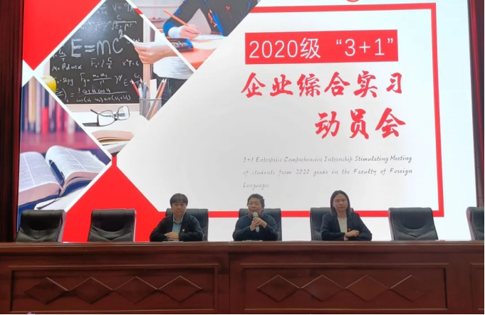 为了使学生进一步认识到企业综合实习的重要性,明确实习的目标和方向,保证2020级学生“3+1”企业综合实习工作的顺利开展。外国语学院于3月6日召开2020级“3+1”企业综合实习动员会,会议由2020级辅导员赵连琦主持,外国语学院院长王莉娅、党总支书记孙晓萍,全体2020级同学参加了本次会议。