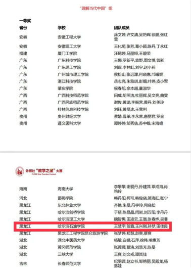 在“理解当代中国”组的159个参赛团队中,我院英语系由王慧宇老师,贺鑫老师,王兴刚老师,孙梦老师,田佳良老师组成的团队荣获全国复赛一等奖。