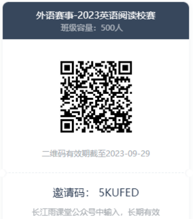报名阅读比赛的同学请在长江雨课堂平台扫码加入班级: