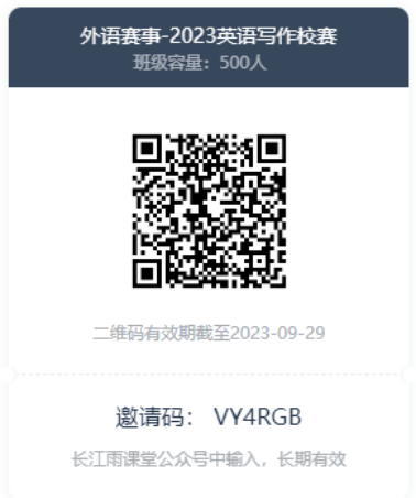 报名写作比赛同学请在长江雨课堂平台扫码加入班级: