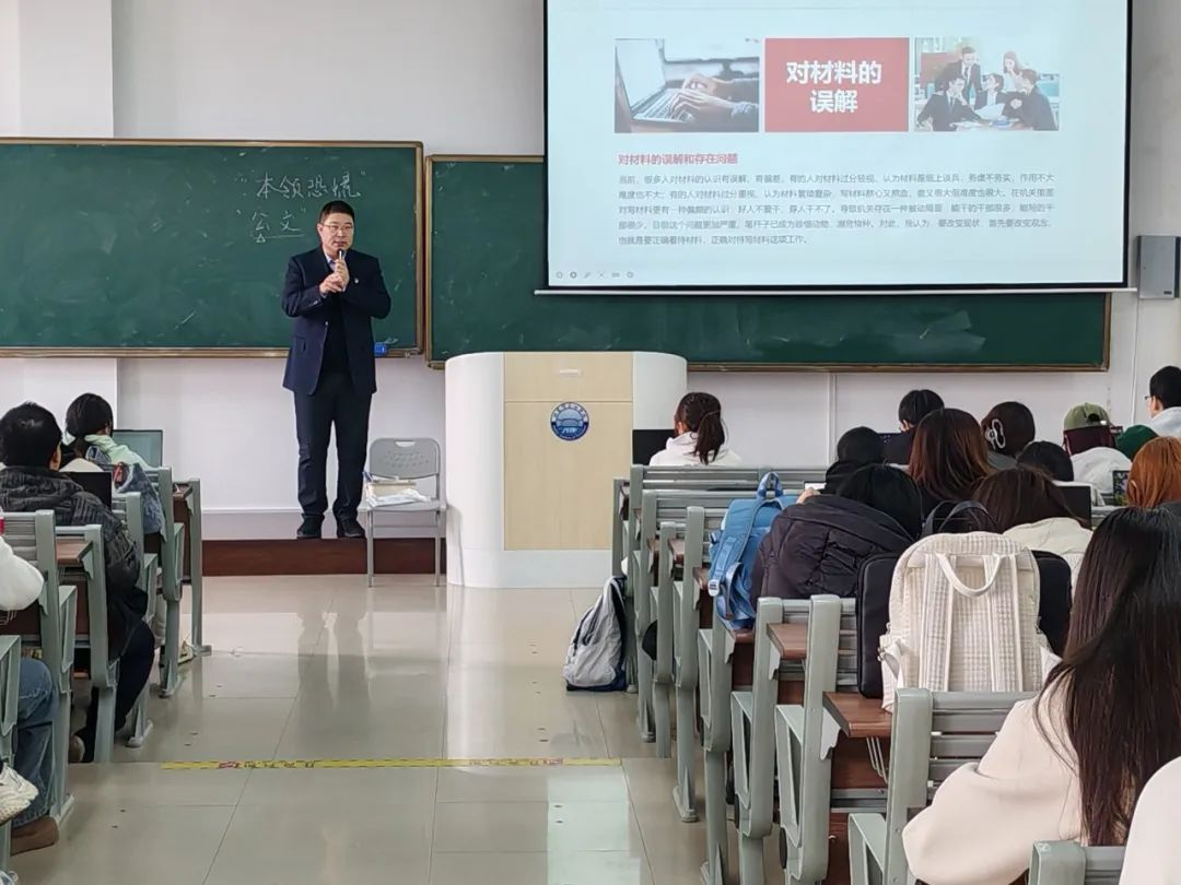 培训期间,毛雷书记凭借其深厚的专业知识和丰富的实践经验,对培训内容进行了系统且深入的讲解。在Word文档操作方面,毛雷书记详细介绍了文档排版、格式设置、图表制作等实用功能,并通过现场演示和互动答疑,帮助同学们熟练掌握操作要点。针对公文写作,毛雷书记从公文的概念、种类、结构框架,到语言表达规范和写作注意事项,进行了全面阐述,并结合实际案例,深入剖析了不同类型公文的写作技巧,为同学们呈现了一堂兼具理论深度与实践指导意义的课程。