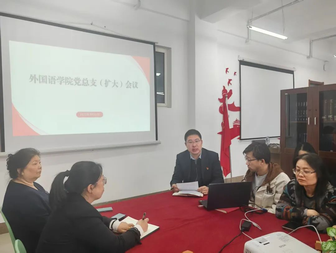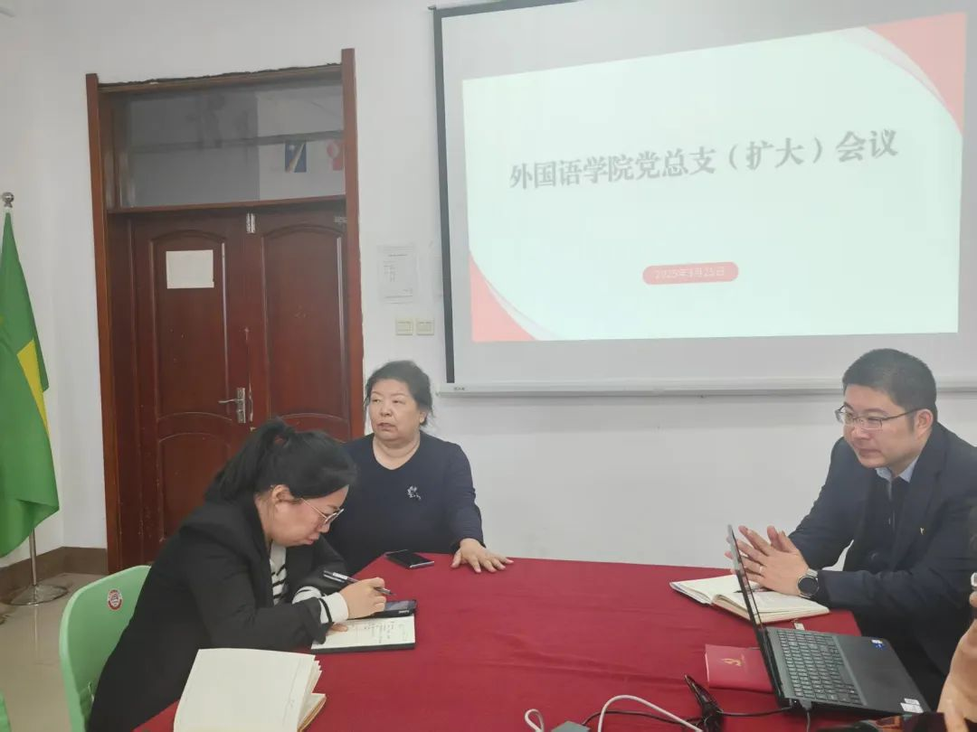 3月25日,外国语学院在706会议室召开党总支(扩大)会议,动员部署深入贯彻中央八项规定精神学习教育工作。学院党总支书记毛雷主持会议,院长、党总支副书记王莉娅,副院长高丽娜,各党支部书记及学院全体党员参加会议。
