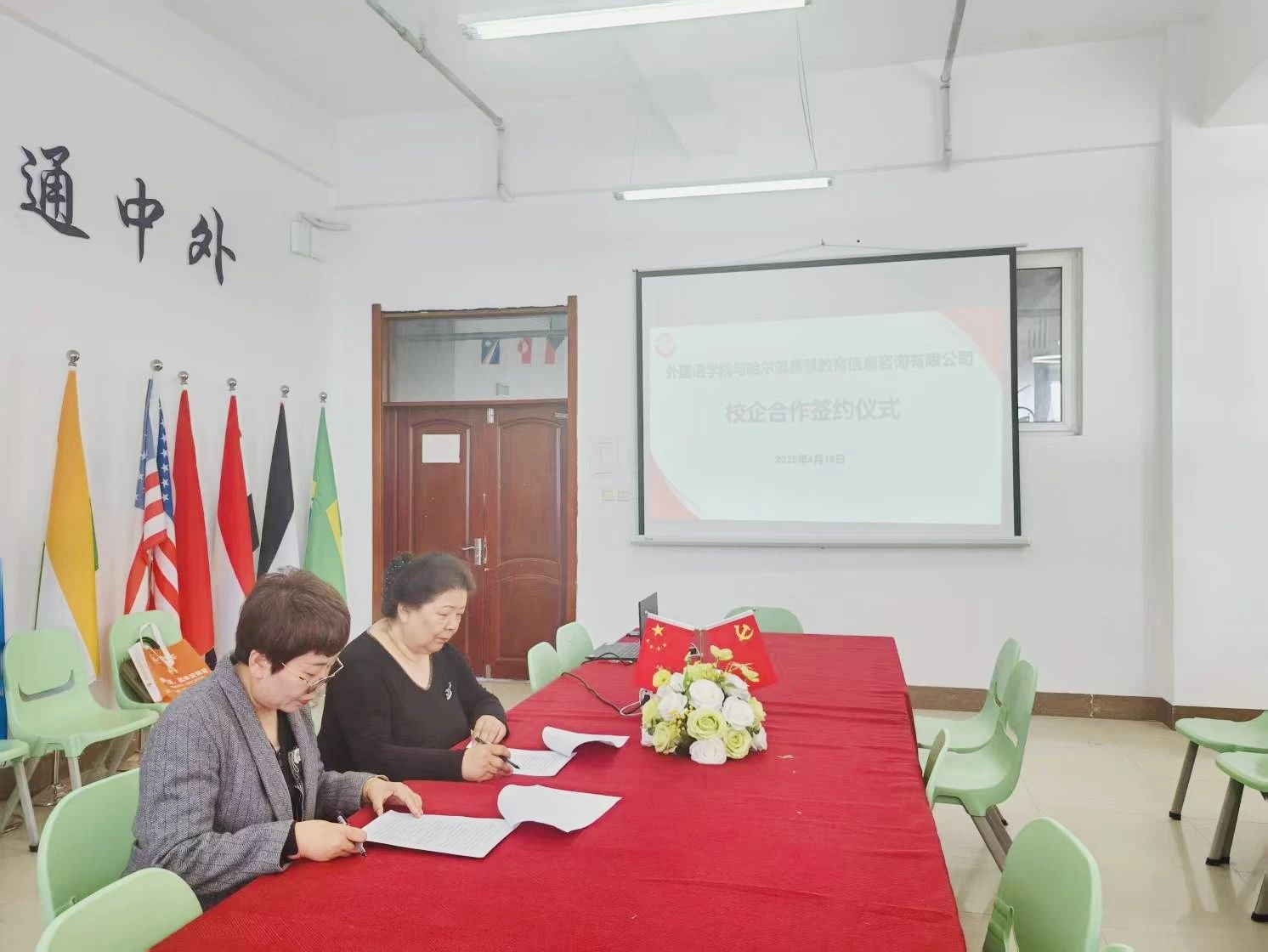 活动开场,在众人见证下,外国语学院王莉娅院长与安妮花阅读馆哈尔滨校区李威校长郑重签署校企合作协议。签约后,双方代表握手留念,这一握手标志着校企合作稳健启航,为后续深度合作筑牢根基。
