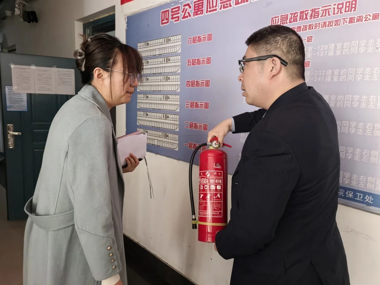 检查组一行先后深入四公寓、五男公寓,对灭火器、消防栓、安全出口等消防设施的配备及有效情况进行逐一核验,现场检查了安全出口指示灯、应急照明灯的运行状态,确保消防通道畅通无阻、标识清晰无遮挡。针对寝室内部,检查组重点检查了私拉乱接电线、违规使用大功率电器、易燃易爆物品存放等问题,同时提示学生做好假期离校前的断电、门窗关闭等安全措施。在检查过程中,检查组对发现的个别问题进行了现场记录,并反馈给相关部门。