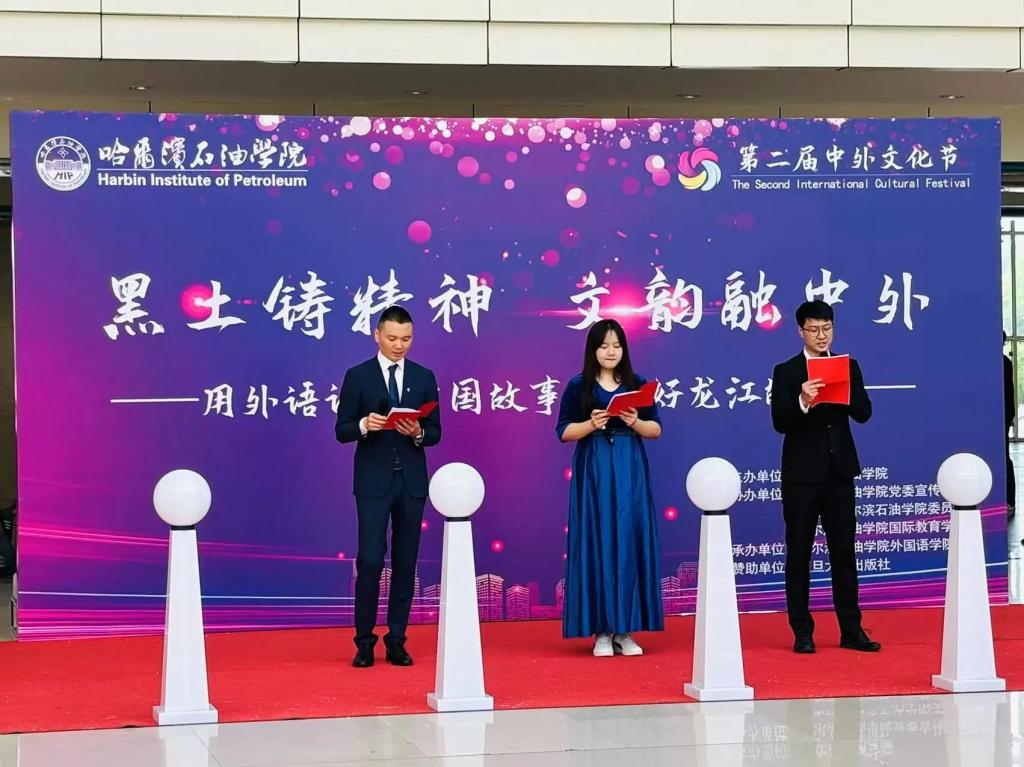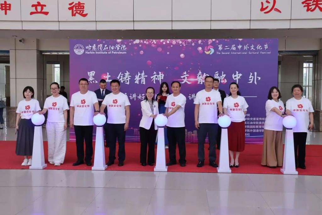2025年6月3日,主教学楼阳光大厅内中外文化交融生辉,由我院承办的“黑土铸精神 文韵融中外——用外语讲好中国故事、讲好龙江故事”第二届中外文化节盛大启幕。全体校领导、机关各单位负责人、各二级学院师生代表及外籍教师、留学生共襄文化盛宴,在跨文化对话中彰显龙江精神、铁人精神内核,筑牢文化自信根基。