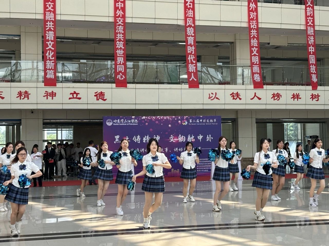 开幕式上,校长王义宁作精彩致辞;外语演讲训练营的师生用英、俄语深情讲述“大庆石油会战”“北大仓变迁”等中国故事与龙江记忆;艺术与教育学院学生献唱民族歌曲,啦啦操表演队以活力舞姿点燃现场氛围,多元艺术形式勾勒出文化交流的生动图景。