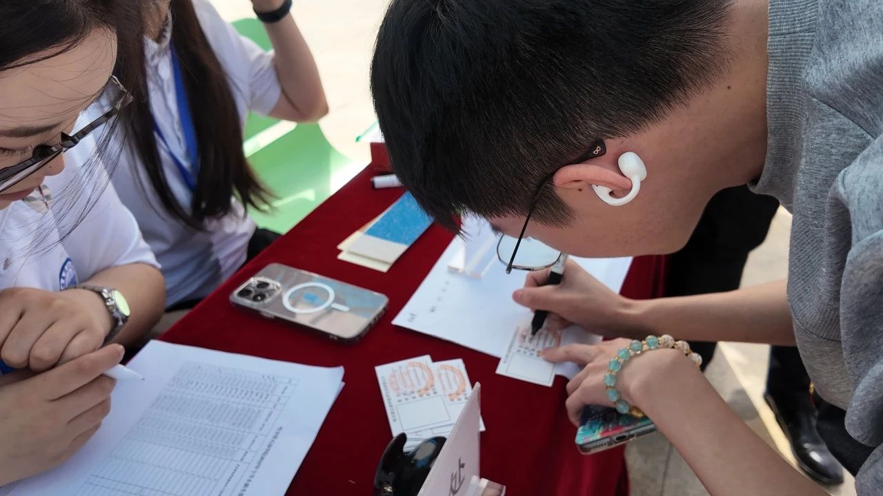 报到手续完成后,学生们纷纷在学院精心为他们准备的许愿树下写下书签,祝愿自己学业有成、祝福学校蒸蒸日上,并在打卡墙处拍照留念。