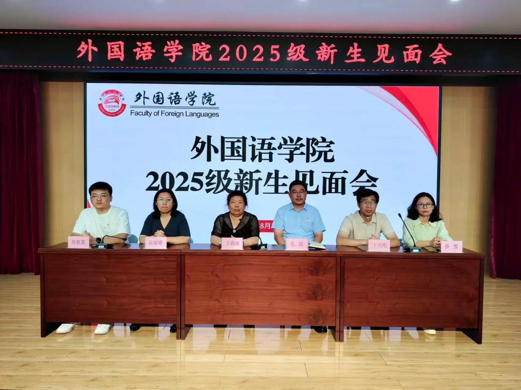 秋风送爽,桂香盈袖,新的征程,就此启幕。8月25日上午,外国语学院于主教518报告厅召开2025级新生见面会,院长王莉娅、党总支书记毛雷、副院长高丽娜、英语系主任王兴刚、俄语系主任乔雪及2025级全体新生参加此次见面会,会议由辅导员郑智慧主持。