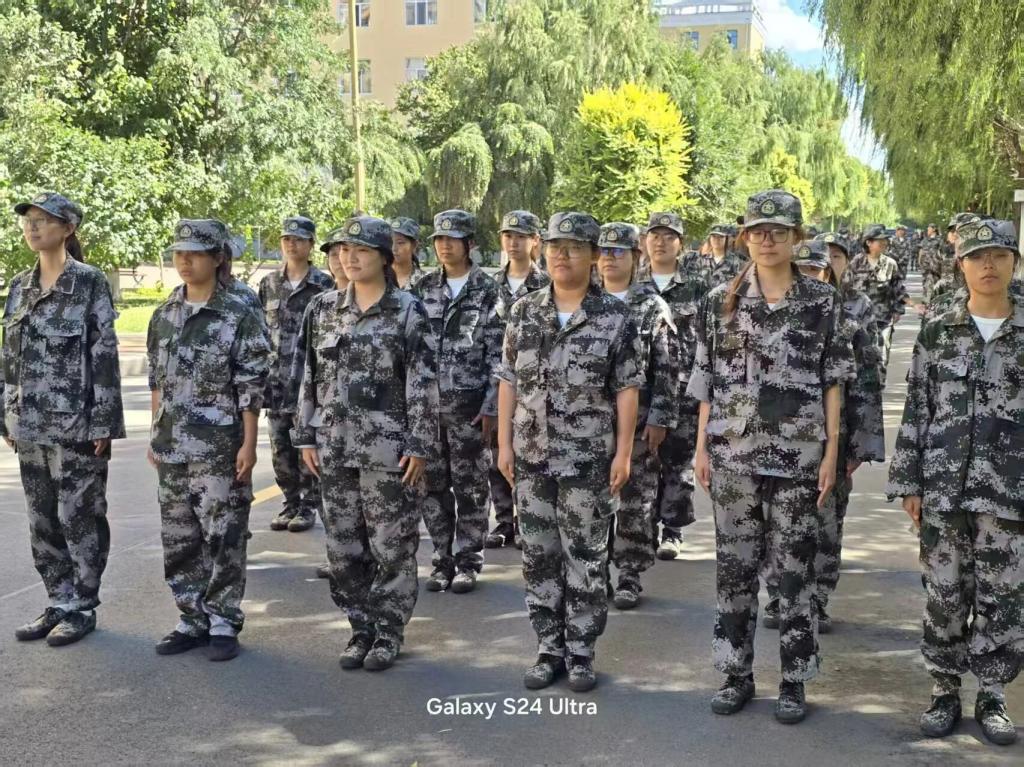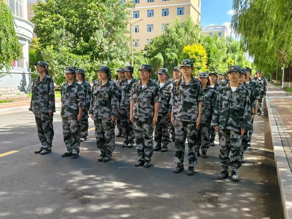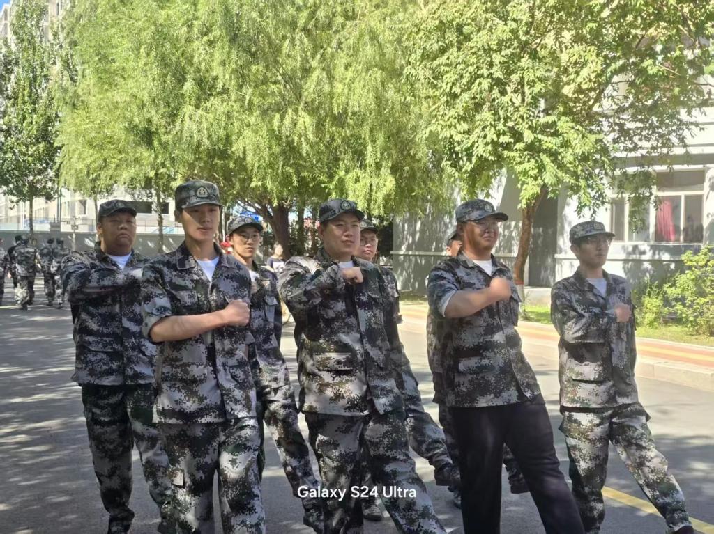 军训期间,新生们在教官的严格指导下,开展队列训练、内务整理、国防教育等课程。从稍息立正、齐步正步到分列式演练,每一个动作都反复打磨;从叠“豆腐块”被子到规范物品摆放,每一处细节都力求标准。即使面对高温天气,同学们始终精神饱满,尽管不少同学额头布满汗珠、衣衫被汗水浸湿,但眼神始终坚定,口号声铿锵有力,展现出顽强的意志品质、展现出新时代青年的蓬勃朝气。