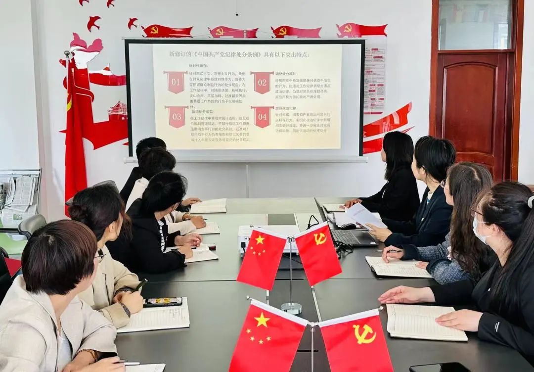 为认真贯彻落实党纪学习教育要求,牢固树立纪律意识和规矩意识,进一步加强全面从严治党和党风廉政建设,5月7日,外国语教工党支部开展党纪学习教育集中学习,集中学习《中国共产党纪律处分条例》。会议由支部书记杨艳春同志主持,全体党员参加。