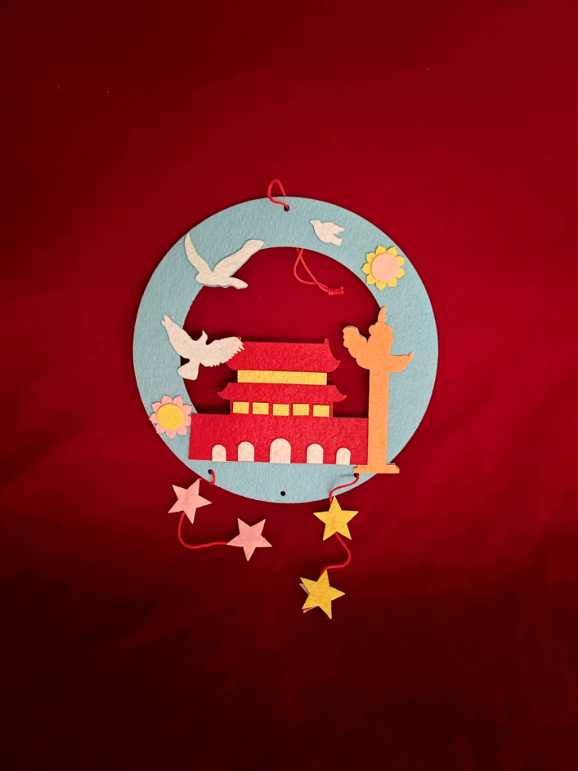 简介:鸽子,天安门,华表柱,花朵,星星是构成作品的主要元素。鸽子作为和平的使者也是世界重大盛世中心不可少的角色之一。让我们珍惜和平,热爱生活,怀有一颗感恩的心才更能体会到自己的职责,在现代社会每个人都有自己职责,自己的价值。无论我以后的学习或工作生活中遇到什么样的困难,我都不会退缩,因为党永远在我心中。