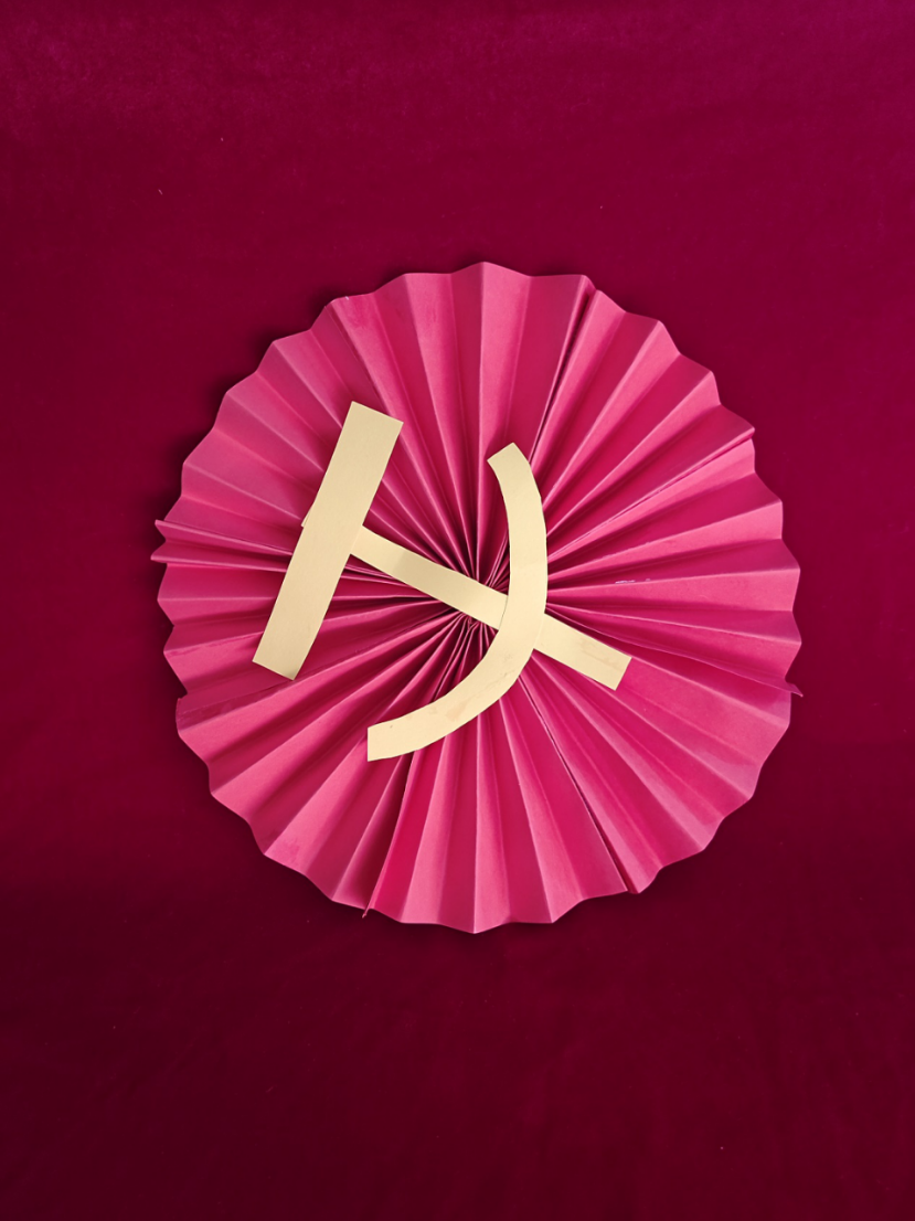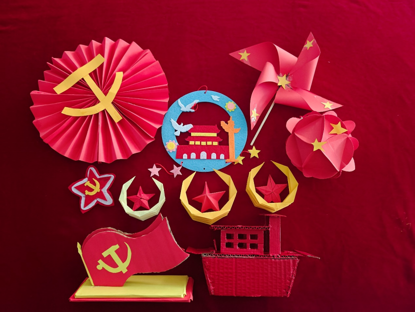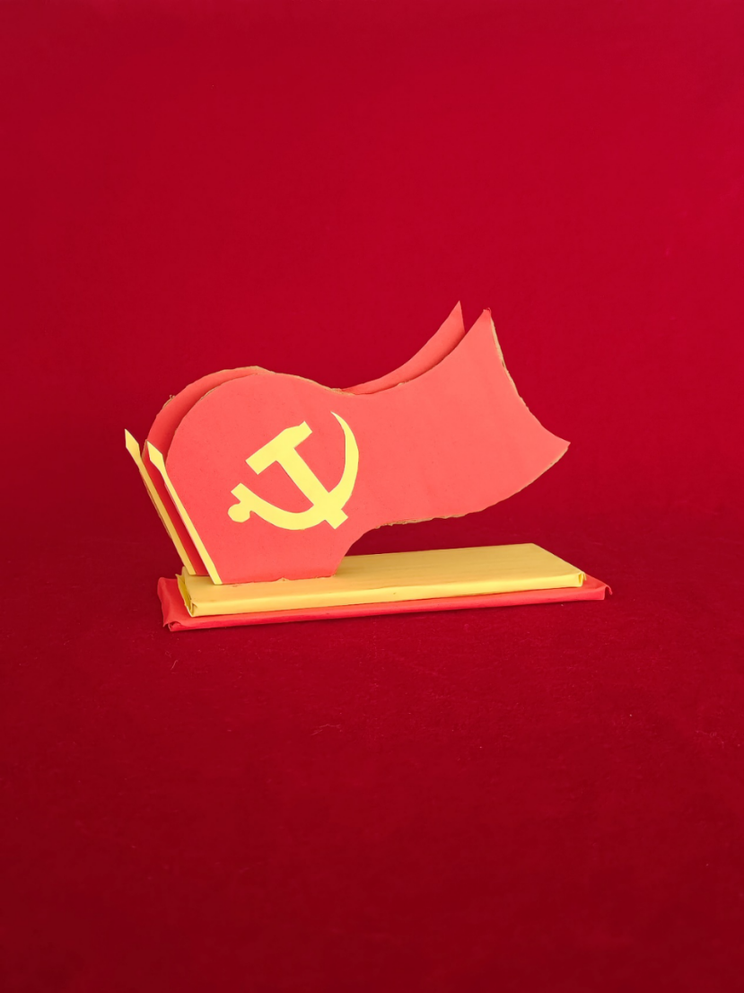 简介:作品由红色彩纸和黄色彩纸构成,作品的正中心是中国共产党党徽,大面积的中国红衬托着金灿灿的党徽,党徽闪闪,烁烁其华。代表着我党向阳而生,逐光而行!