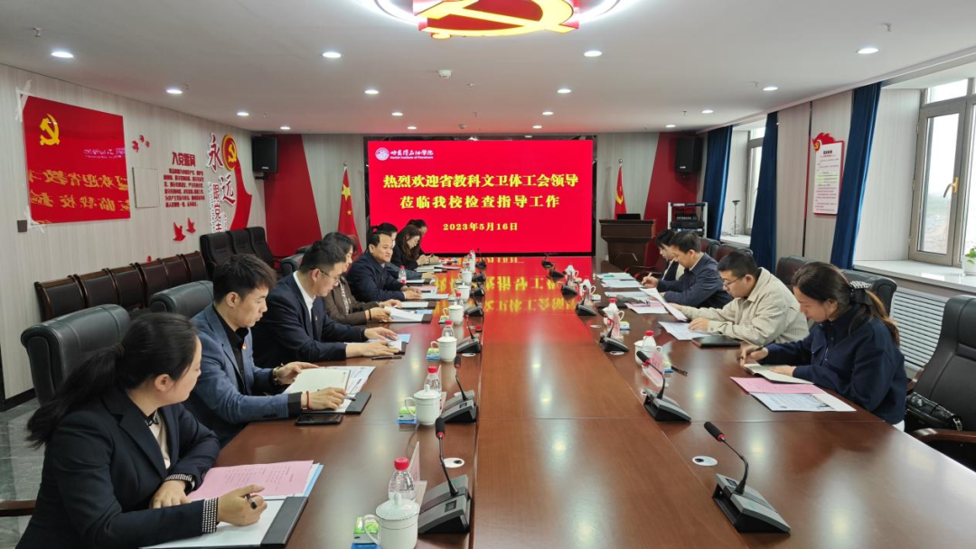 2023年5月16日上午,省教科文卫体工会副主席、一级调研员李永强一行四人莅临金沙官网,对学校工会工作的开展情况进行调研指导。省委教育工委组织部吴迪、省教科文卫体工会李偲、彭超月同志参加调研。
