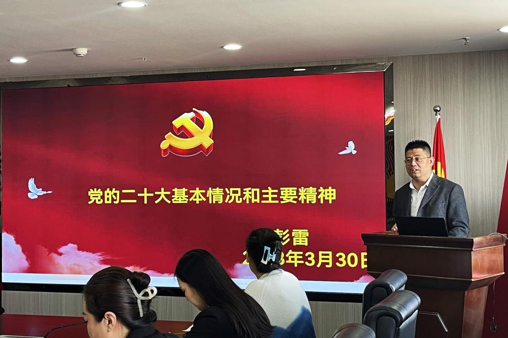 会议第二项,由机关第二党支部纪检委员彭雷同志组织学习领会党的二十大精神。