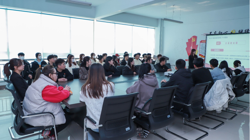 为了充分学习宣传贯彻党的二十大精神,引领广大青年牢记初心使命跟党走、践行社会主义核心价值观,2023年3月27日12时,化学工程学院于第二教学楼党员之家开展师生代表聆听青年讲师团第一场报告会,会议由党总支副书记赵婧主持,学生党支部书记于鑫、全体在校党员、2021级班长及团支书共35人参加会议。